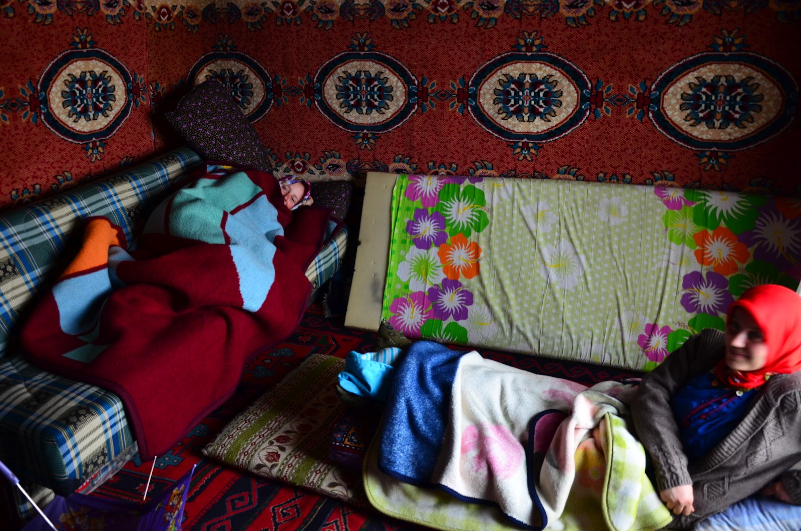 Au bout d’un moment, nous entendons du bruit dans le couloir, et alors Mustafa et Tuna se lèvent brusquement, un air de panique dans les yeux. Je me lève aussi du coup, quand entrent dans la pièce le grand père accompagné de deux hommes. L’un d’eux est l’imam du village, et cela semble être très important de recevoir l’imam chez soi. Celui-ci s’assit sur la banquette tandis que les autres se mettent par terre. L’imam me fait signe de m’asseoir sur la banquette aussi. Ils discutent un moment, puis l’imam me montre le minaret et me mime la question « Y-a-t’il des minarets en France ? ». Je lui répond que oui, il y en a parfois, mais qu’il n’y a pas d’appel à la prière. Le « dialogue » avec lui est un peu plus facile, non pas qu’il parle anglais ou français, mais simplement parce qu’il est assez bon en mimes (bon à part au tout début, où je pensai qu’il me demandait si je voulais monter en haut du minaret…) ! Il a même commencé un appel à la prière pour me faire comprendre de quoi il parlait. J’aurai bien aimé qu’il continue un peu mais bon, je sais pas si cela se fait trop…