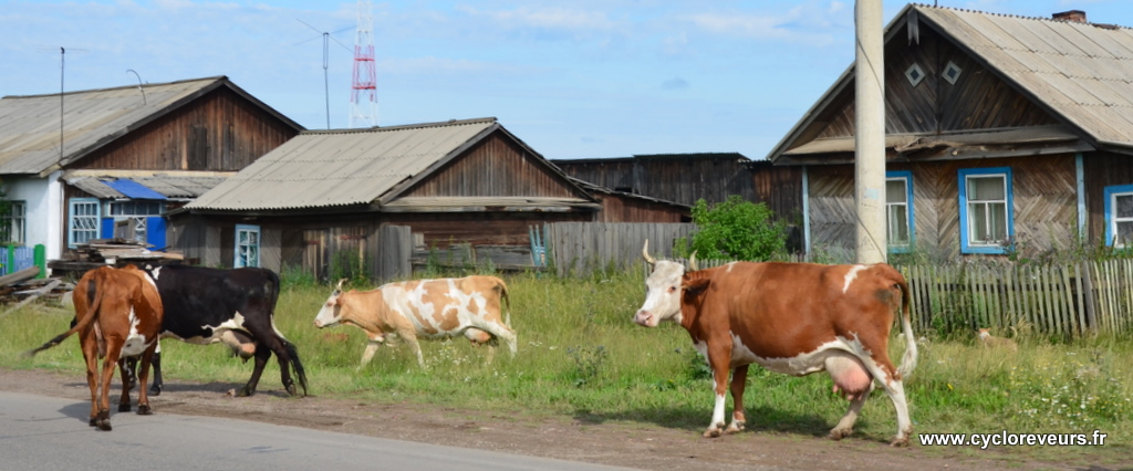 Ce que nous trouvons sur notre route côté paysage, ce sont de grands étangs dans lesquels on peut se baigner, des espaces de steppes et surtout, la taïga, parfois bien vallonnée (les fameuses montagnes russes hé!hé!).