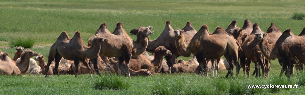 Et pour la fin, nous vous réservons nos copains les plus surprenants ! Il s’agit des chameaux, qu’on ne s’attendait pas à croiser avant d’entrer dans le désert de Gobi. Mais ils sont bien là, avec leur drôle d’allure paisible et imposante à la fois !