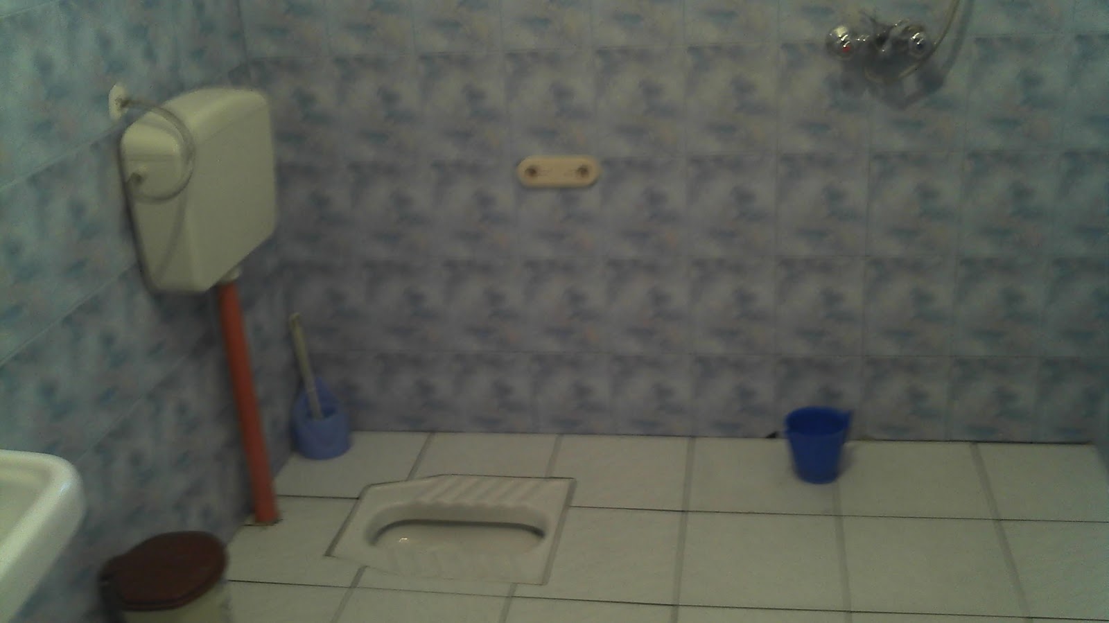 • La salle de bain. Nous n’avons pris qu’une seule fois une douche chez les albanais. Souvent, le bac de douche (quand il y en a un) sert de bac à linge sale. Visiblement, ils ne se servent pas souvent de la douche, sauf en remplacement du papier toilette, inexistant dans les toilettes à la turque. Ça aussi, c’est un système qui n’est pas idiot, peut-être plus hygiénique et en tout cas moins polluant que le PQ.