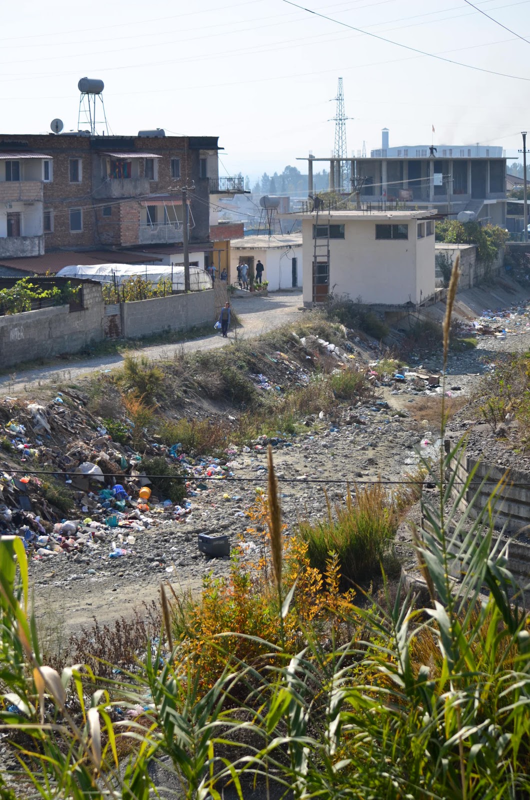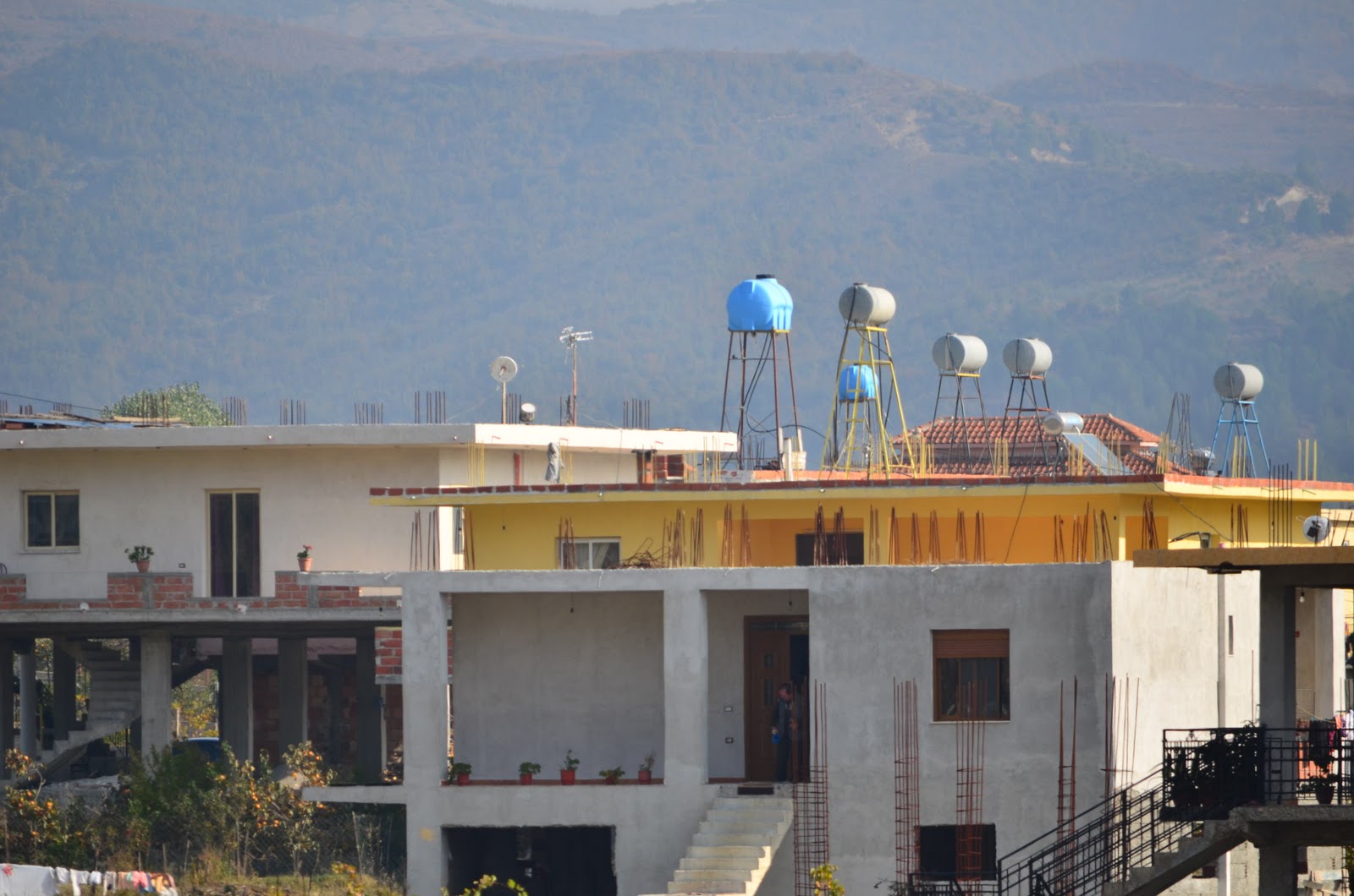 • Visiblement, il n’y a ni l’eau courante, ni le tout à l’égout. Chacun a son conteneur d’eau perché sur le toit et on ne voit aucun réseau de récupération des eaux usées. Pour les châteaux d’eau individuel, c’est pratique, ça fait l’eau chaude en même temps quand il y a du soleil. Pour illustrer, voilà une petite citation d’une dame qui nous a accueillis, traduite de l’albanais par langage international des signes « ah non, on ne peut pas prendre de douche à cette heure-ci, il fait nuit… ».