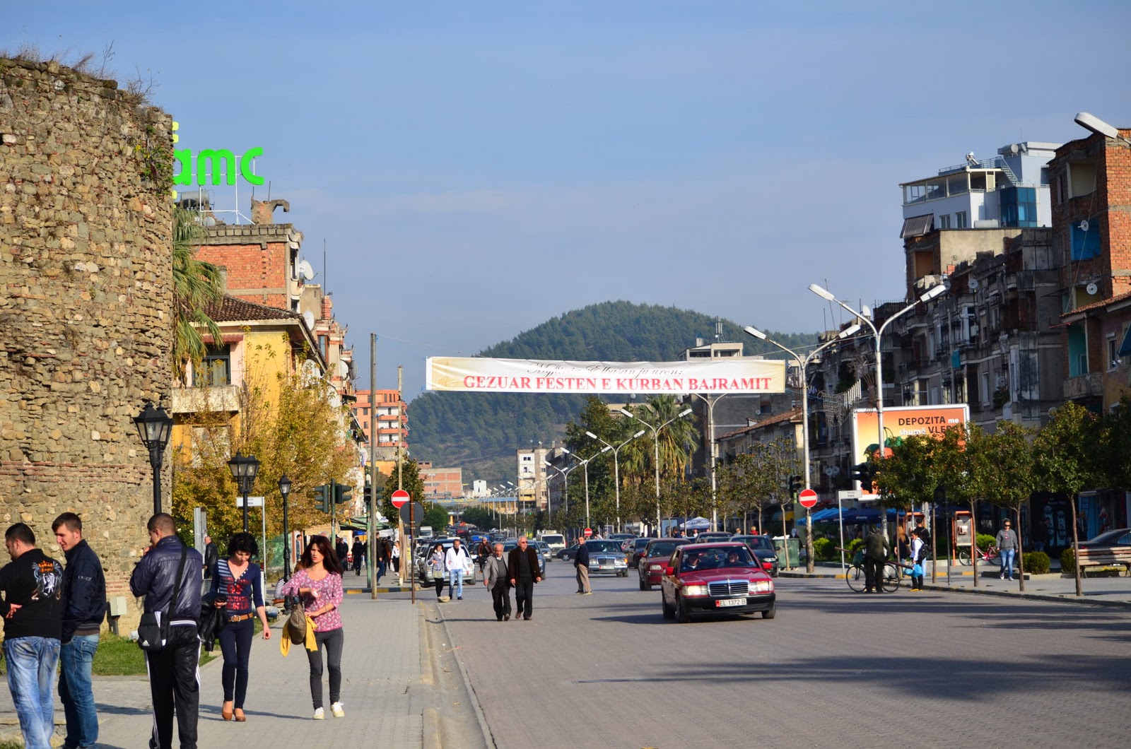 Elbasan est une ville du centre de l’Albanie. C’est étudiant, il y a des quartiers piétons, les gens ont l’air à peine surpris de nous voir et il y a même le wi-fi !
