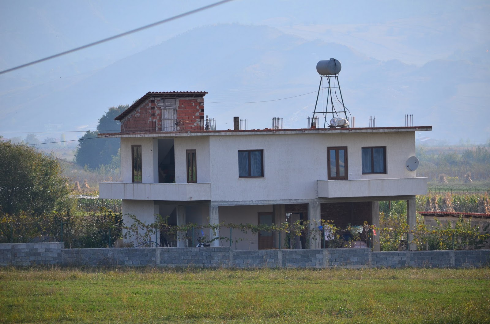 • Les albanais sont les rois du béton. Les maisons sont TOUTES en béton, des planchers aux toits en passant par les escaliers et les murs (ben oui, comme les maisons ne sont pas terminées, ça permet d’en savoir plus sur les modes de construction !). Parfois il y a de la grosse brique aussi, mal jointoyée, sinon, c’est trop solide !