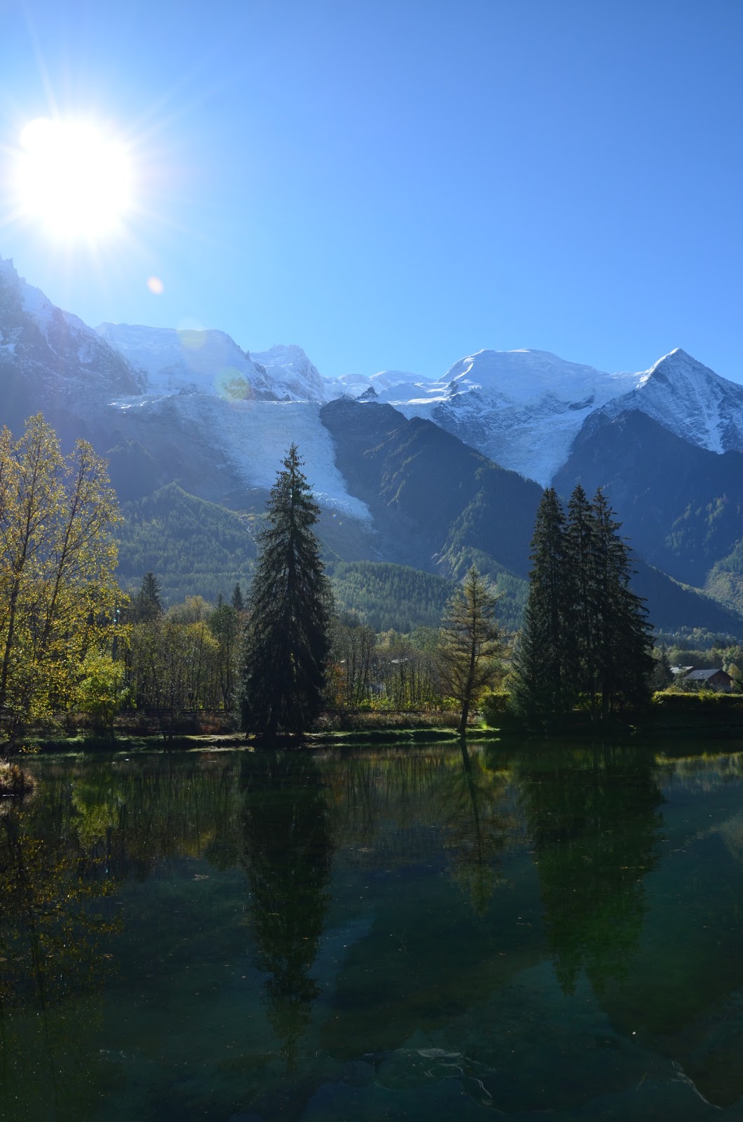 Contre jour parfait au dessus du Mont Blanc (paradoxalement la plus petite montagne enneigée, au milieu). Merci à nos sauveurs des Houches sans qui nous serions passés sans le voir !