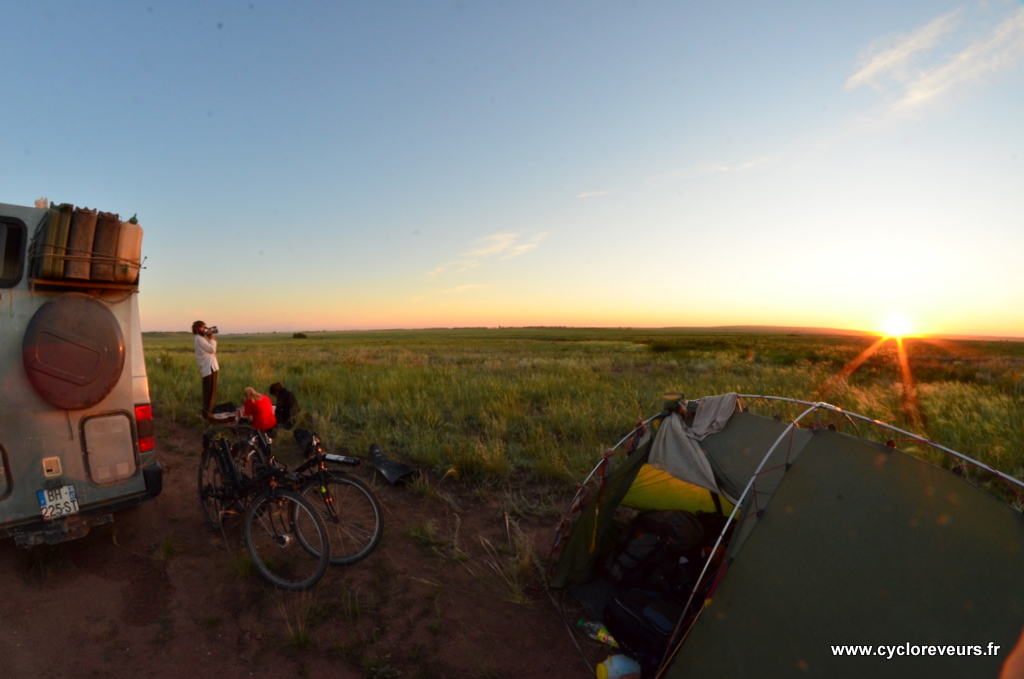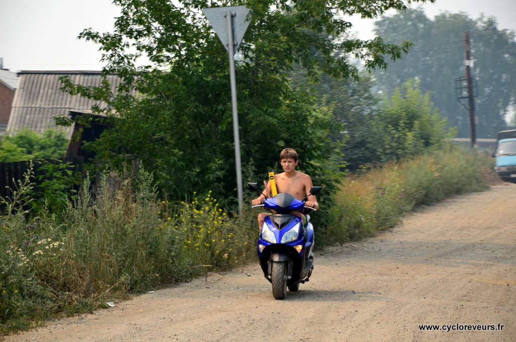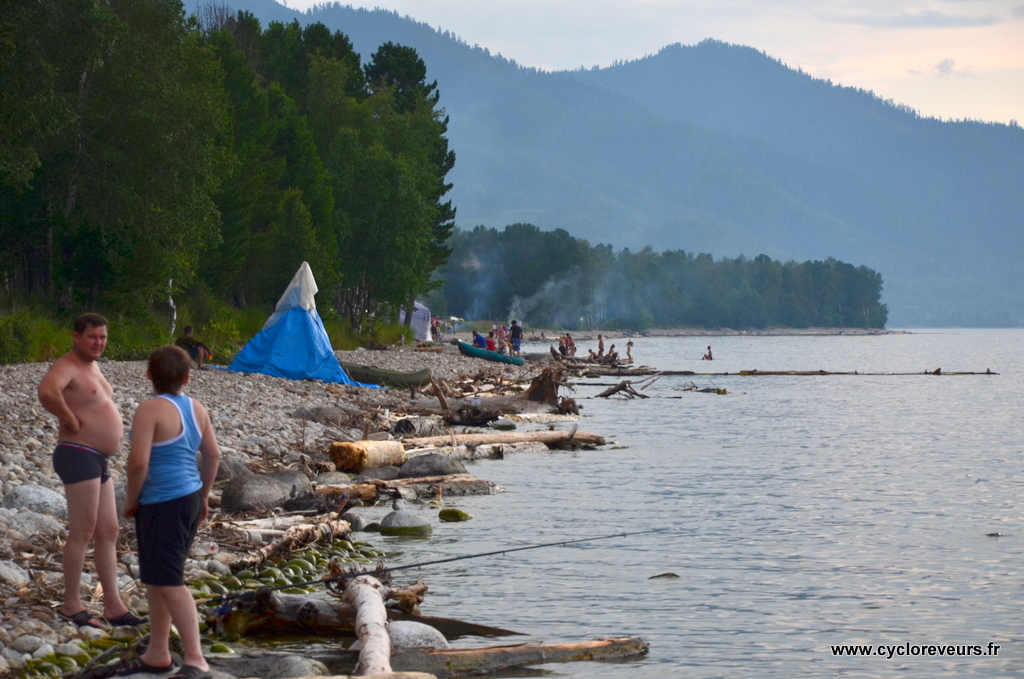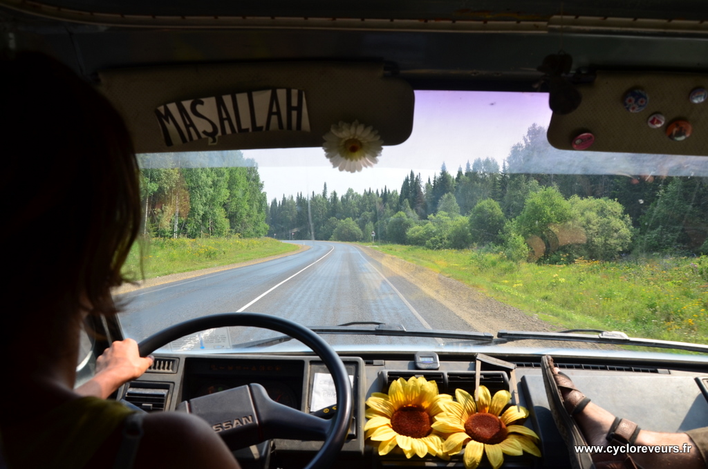 Ce que nous trouvons sur notre route côté paysage, ce sont de grands étangs dans lesquels on peut se baigner, des espaces de steppes et surtout, la taïga, parfois bien vallonnée (les fameuses montagnes russes hé!hé!).