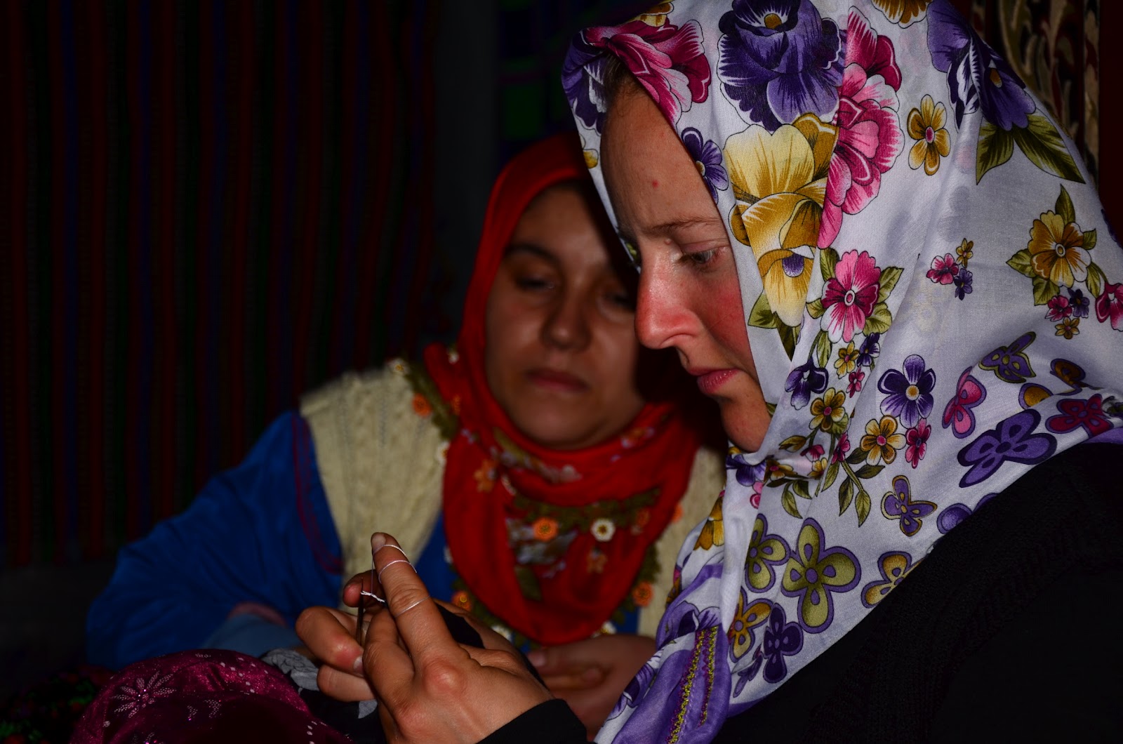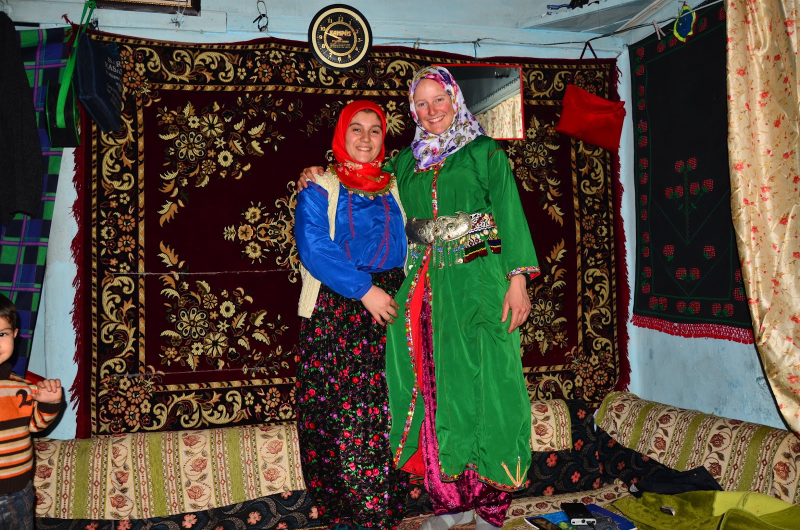 Au bout d’un moment, nous entendons du bruit dans le couloir, et alors Mustafa et Tuna se lèvent brusquement, un air de panique dans les yeux. Je me lève aussi du coup, quand entrent dans la pièce le grand père accompagné de deux hommes. L’un d’eux est l’imam du village, et cela semble être très important de recevoir l’imam chez soi. Celui-ci s’assit sur la banquette tandis que les autres se mettent par terre. L’imam me fait signe de m’asseoir sur la banquette aussi. Ils discutent un moment, puis l’imam me montre le minaret et me mime la question « Y-a-t’il des minarets en France ? ». Je lui répond que oui, il y en a parfois, mais qu’il n’y a pas d’appel à la prière. Le « dialogue » avec lui est un peu plus facile, non pas qu’il parle anglais ou français, mais simplement parce qu’il est assez bon en mimes (bon à part au tout début, où je pensai qu’il me demandait si je voulais monter en haut du minaret…) ! Il a même commencé un appel à la prière pour me faire comprendre de quoi il parlait. J’aurai bien aimé qu’il continue un peu mais bon, je sais pas si cela se fait trop…