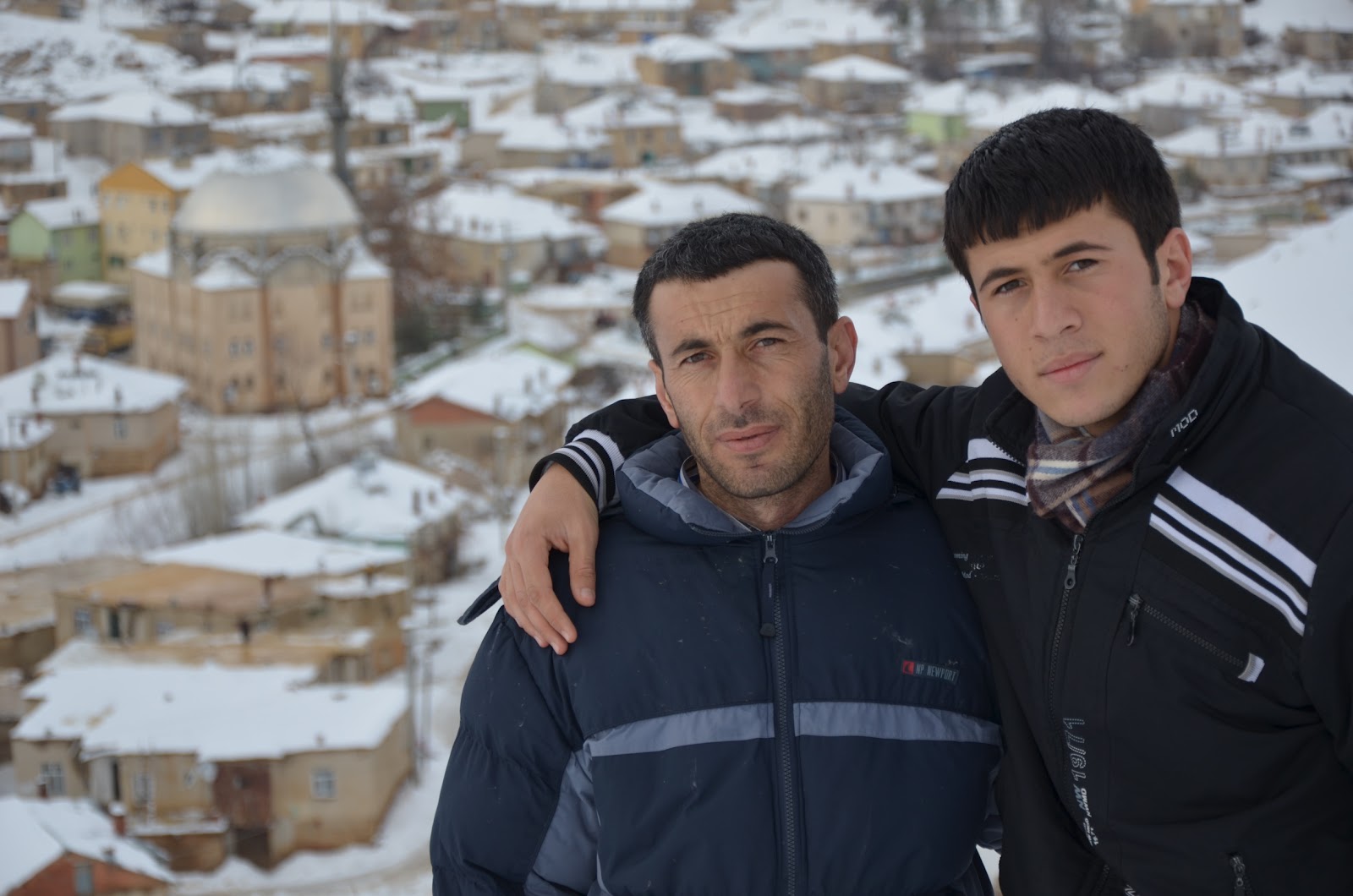 Hassan et Mustafa, qui posent fièrement devant leur village enneigé |