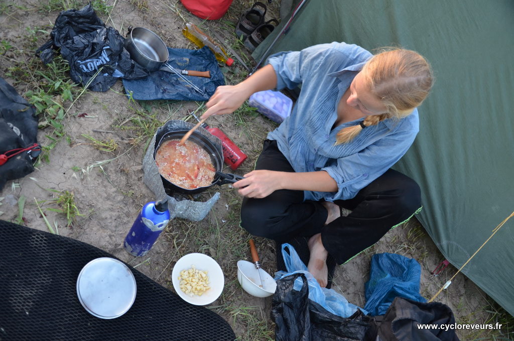 Comme d’habitude, nous faisons la bouffe à même le sol, mais les paysages sont un peu différents :