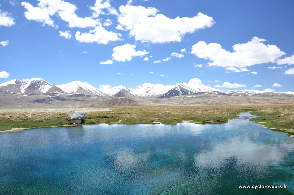 Lac Karakul, d’une couleur éclatante par beau temps. Malheureusement pour nous, le temps commençait à se dégrader un peu… |